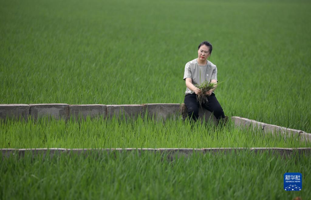 6月23日,高月在富家镇四台子村黑土地质量监测点查看水稻长势。