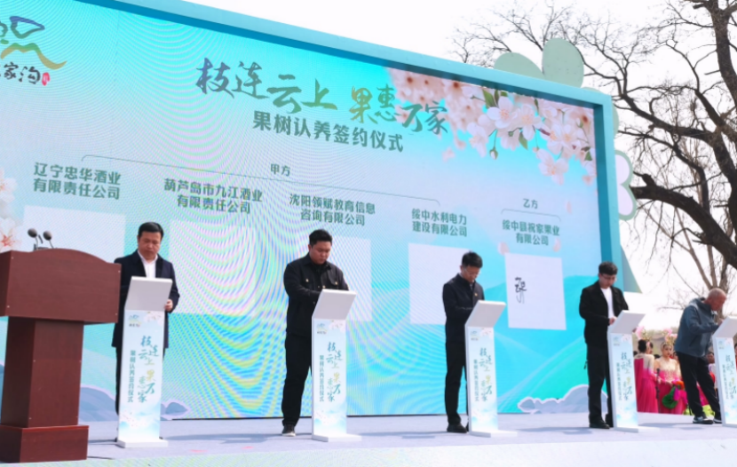 开幕式上,绥中县发布了祝家沟村的主题LOGO,并对设计思路进行了详细解读。活动还邀请了果树专家对祝家沟村的果业发展情况进行了深入介绍。此外,27家果树认养企业代表与祝家沟村签订了认养协议,为当地果业发展注入了新的活力。