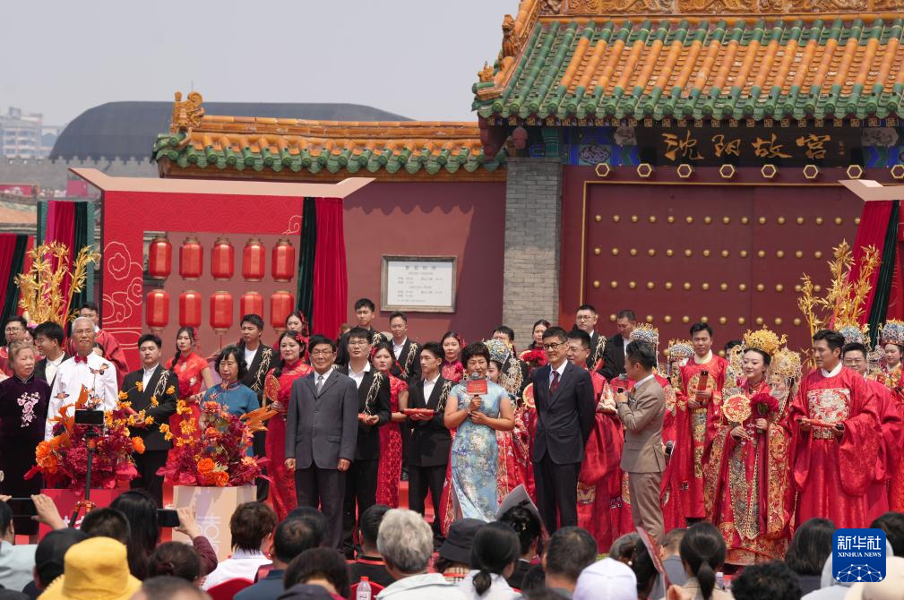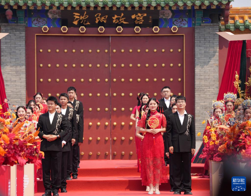 当日,“爱在沈阳 情定方城”沈阳市暨沈河区第五届国风集体婚礼在沈阳故宫南广场举行,52对新人在亲友见证下缔结良缘。