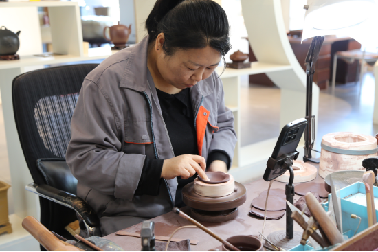 喀左县高度重视紫砂陶瓷高端技术人才和工艺新人的培养,通过招才引智、加强培训、联合办学等举措,不断发展壮大紫陶从业人才队伍。当地引进宜兴、景德镇等地的多位工艺美术大师,通过以师带徒、以老带新等方式,提高紫陶文化产业的工艺技术水平。同时,注重培养本土人才。喀左北陶紫砂工作室艺术总监、非遗传承人艾雅芝,先后创办了喀左紫砂非遗工坊、北陶紫砂技术培训学校和青年创业孵化基地,其中北陶紫砂技术培训学校免费培训紫砂产业人才1000多人次。在喀左,像艾雅芝一样的紫陶产业直接从业人员约1500人,具有职称资格技术人员300余人、省级工艺美术大师6人,紫陶上下游产业从业人员合计1万余人。