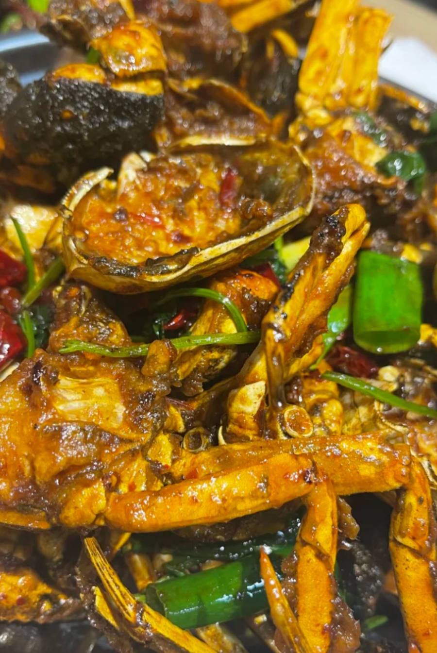 那辣炒河蟹便是酣畅淋漓的味觉盛宴