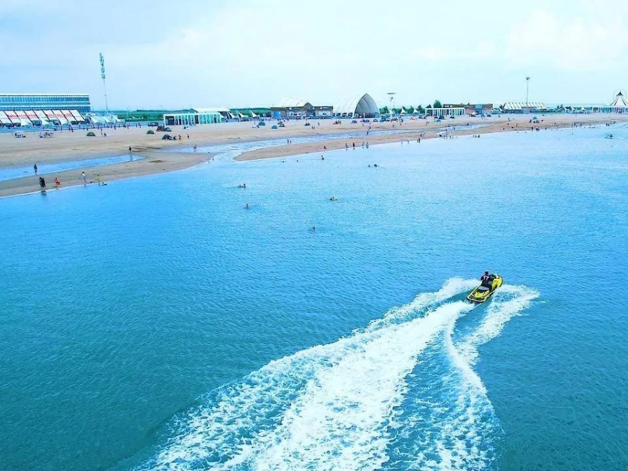 金帛滩景区坐落在盘锦辽东湾,拥有1600米金色沙滩和清澈海水,被誉为"东北小马代"。这里不仅能欣赏中国最北海岸线的壮美风光,还可体验摩托艇、沙滩排球等丰富的水上活动。