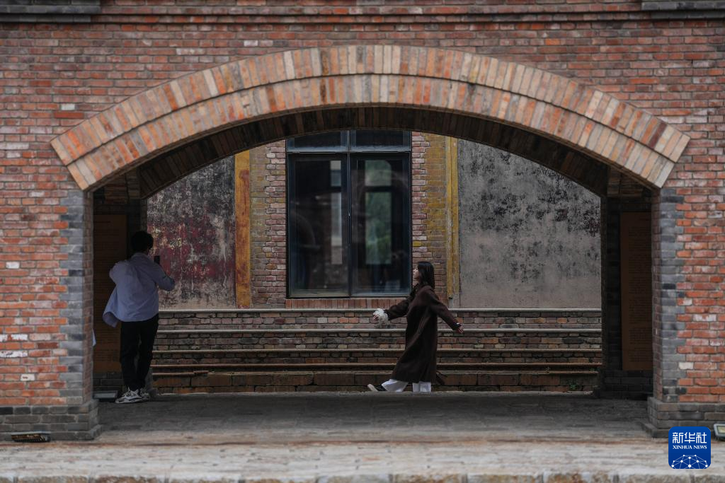 10月6日,游客在沈阳奉天工厂文创园内拍照。