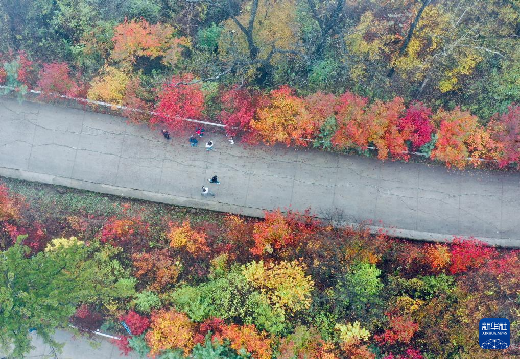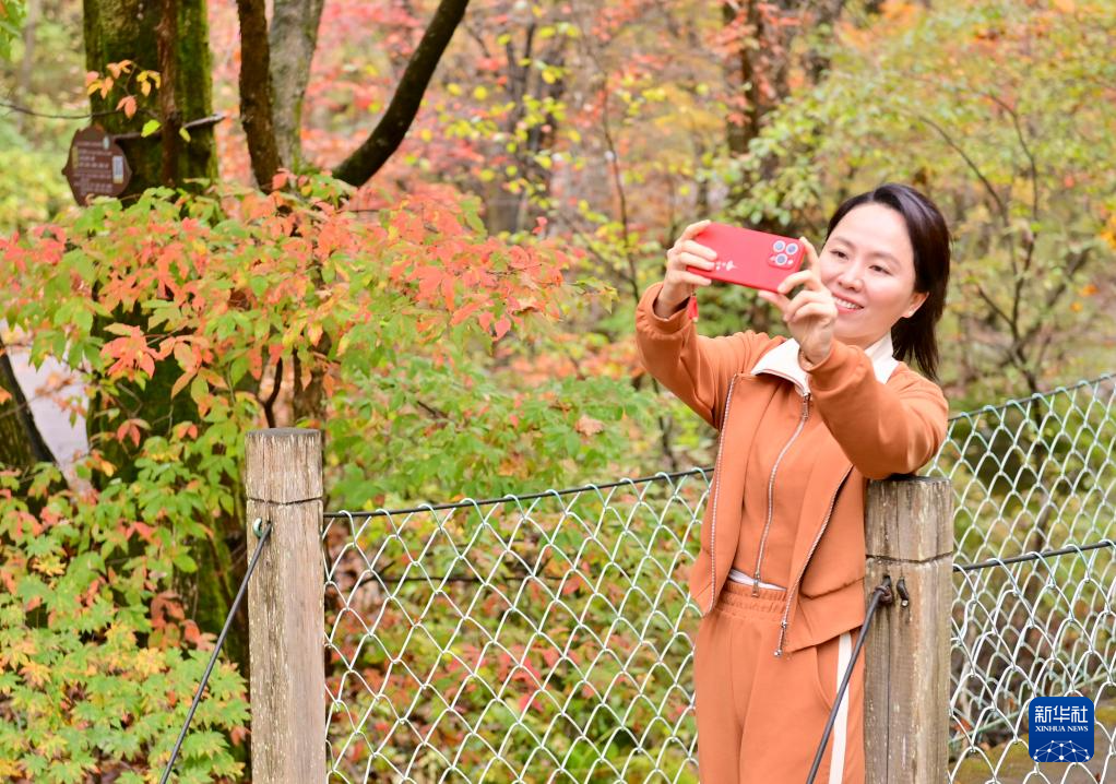 近日,辽宁省丹东市宽甸满族自治县的天桥沟景区迎来秋季枫叶观赏期,满山秋色吸引游客前来观景游玩。