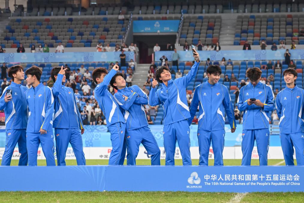10月25日,冠军辽宁队在颁奖仪式上自拍留念。新华社记者 杜子璇 摄