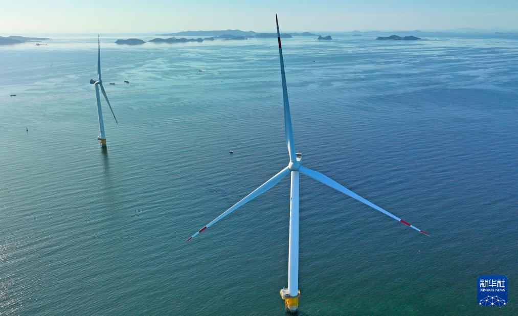 2023年9月13日拍摄的大连庄河海上风电项目(无人机照片)。新华社记者 杨青 摄