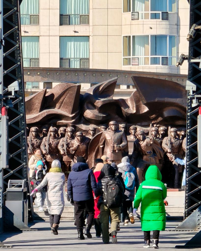 1月21日,游客在抗美援朝纪念馆内拍照。