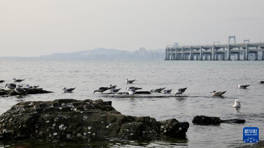 冬日里,在辽宁省大连市海滨,成群的海鸥聚集栖息,吸引游人前来观赏。