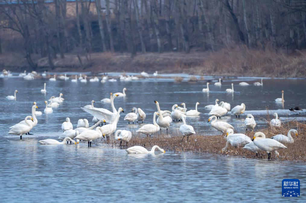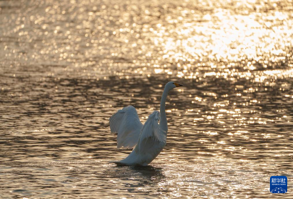 冬季以来,大批天鹅飞临辽宁省朝阳市大凌河栖息越冬,吸引人们前来观赏和拍照。