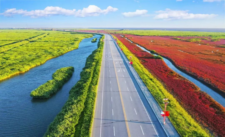 春日的盘锦褪去冬日静谧,尽显湿地活力。红海滩国家风景廊道绿意初绽、碱蓬草逐渐萌芽生长,这里是中国最北海岸线,也是丹顶鹤等候鸟迁徙、繁衍的乐园。