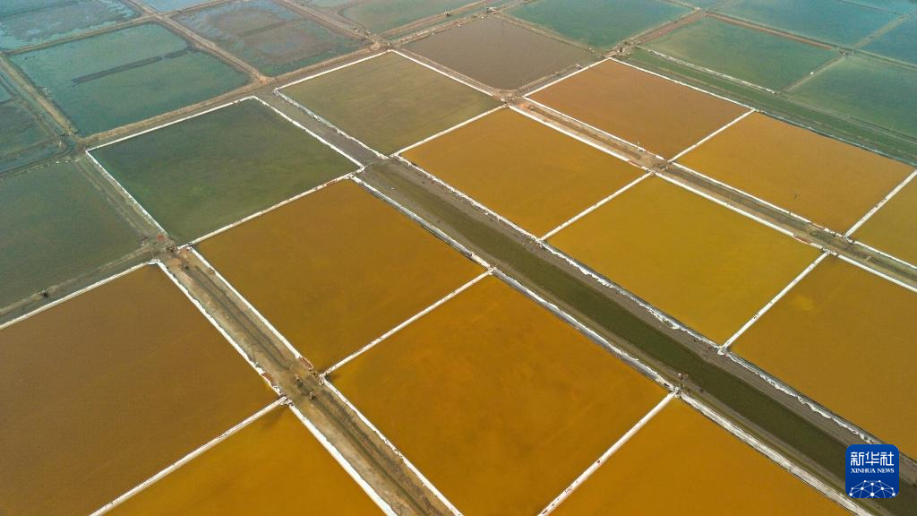 深秋时节,辽宁省营口市老边区的盐田色彩斑斓,宛如大地的调色板,美不胜收。pagebreak