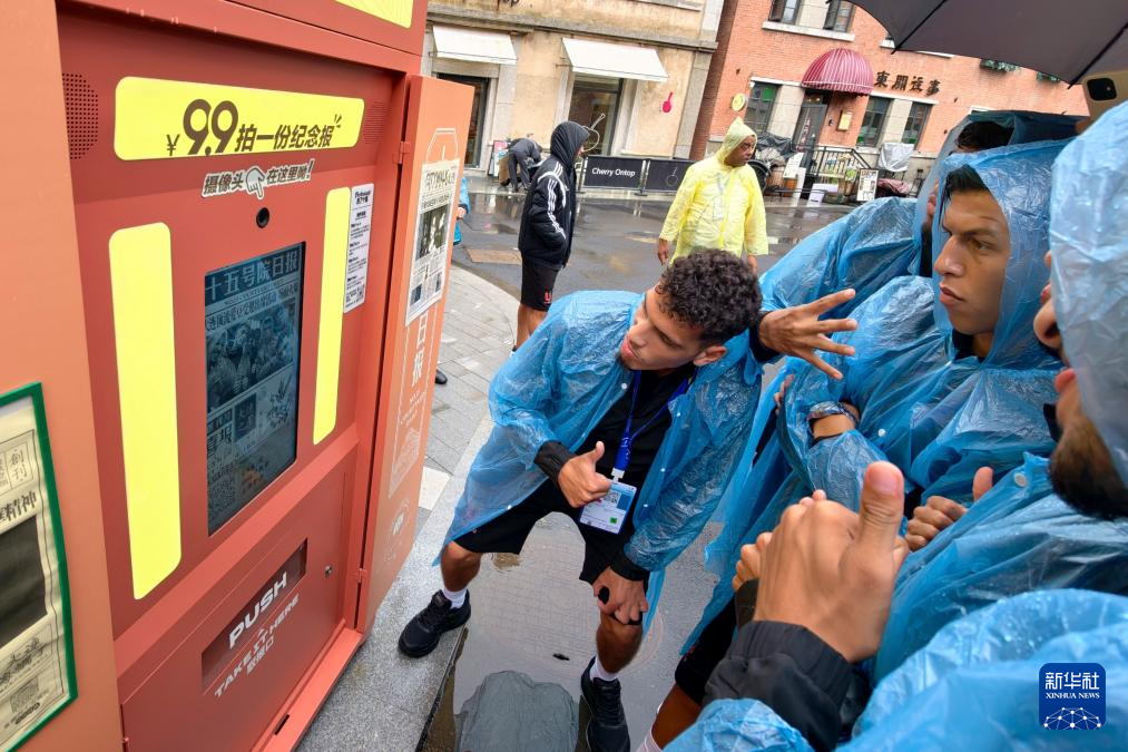 9月23日,摩洛哥乔伊杜卡利大学队球员在大连东关街历史文化街区游玩。