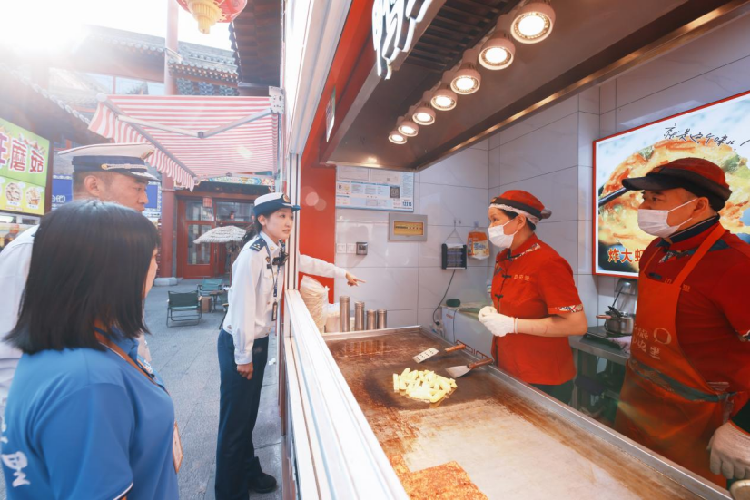 同时,消防监督员们还会反复提醒摊主注意用电安全:“小吃店电器多、功率大,最怕‘小马拉大车’,要使用符合标准的插线板,一定要记得断电。”