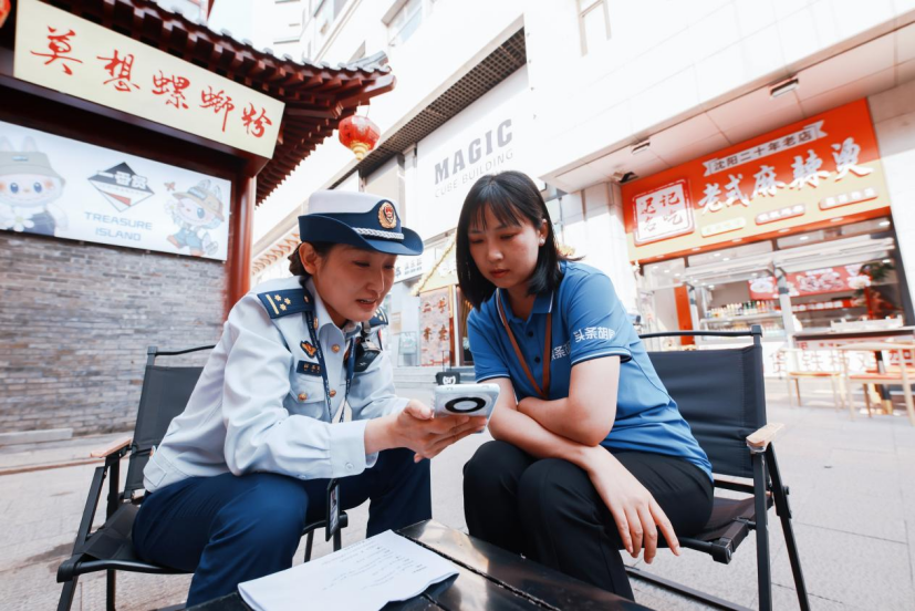漫步在沈阳中街,空气中弥漫着各类小吃的诱人香气。在小吃街角落的通道里,几个空纸壳箱被夹在扶手与墙面之间。“通道里不能放东西,这是消防通道,更是‘生命通道’,尤其是纸箱这种易燃物,要马上清理掉。”消防监督员对摊主说。