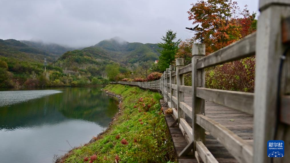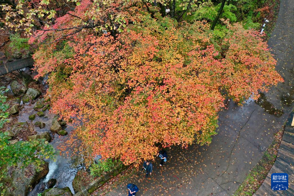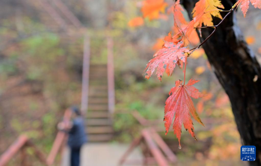 近日,辽宁省丹东市宽甸满族自治县的天桥沟景区迎来秋季枫叶观赏期,满山秋色吸引游客前来观景游玩。