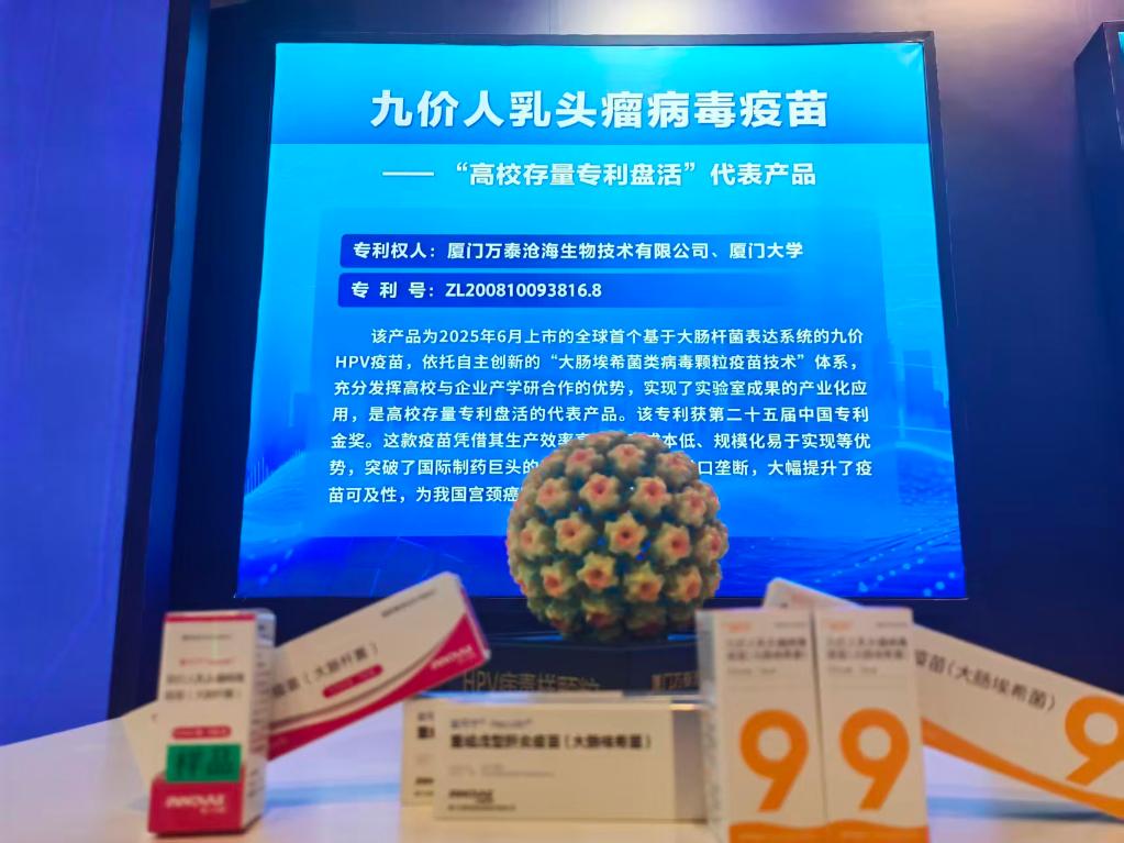 在第十四届中国国际专利技术与产品交易会上展出的九价人乳头瘤病毒疫苗。新华社记者徐鹏航 摄
