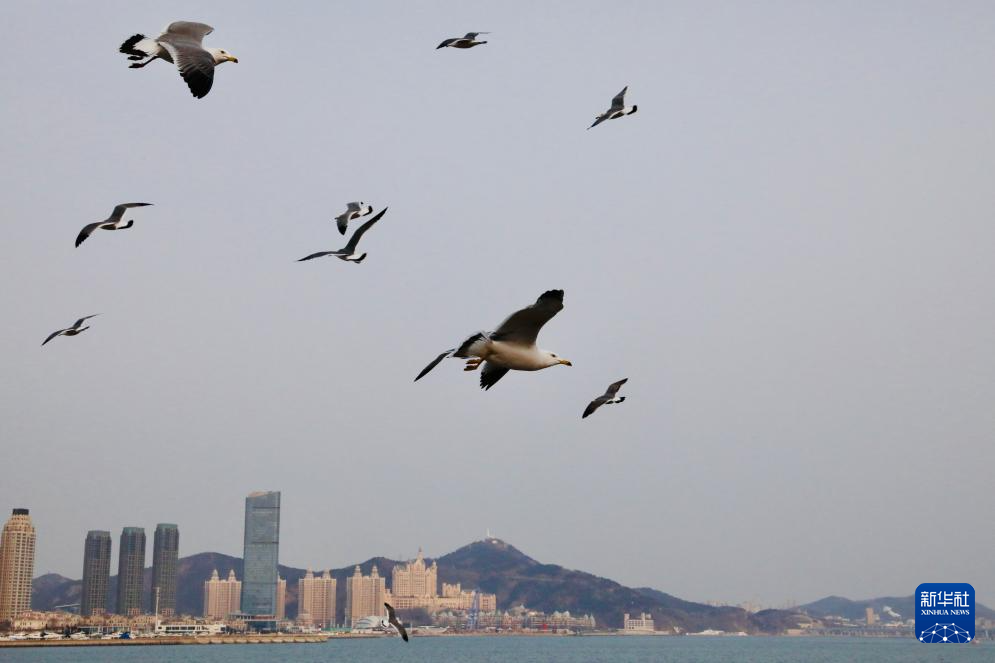 冬日里,在辽宁省大连市海滨,成群的海鸥聚集栖息,吸引游人前来观赏。