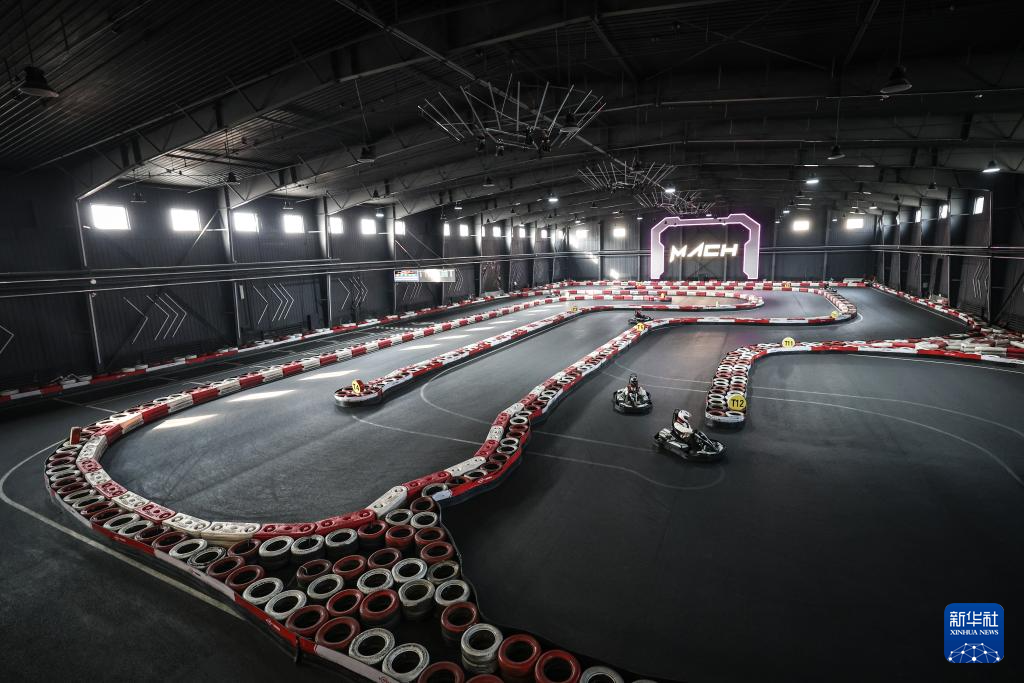 2月12日,游客在沈阳粮仓文化创意产业园体验室内卡丁车项目。