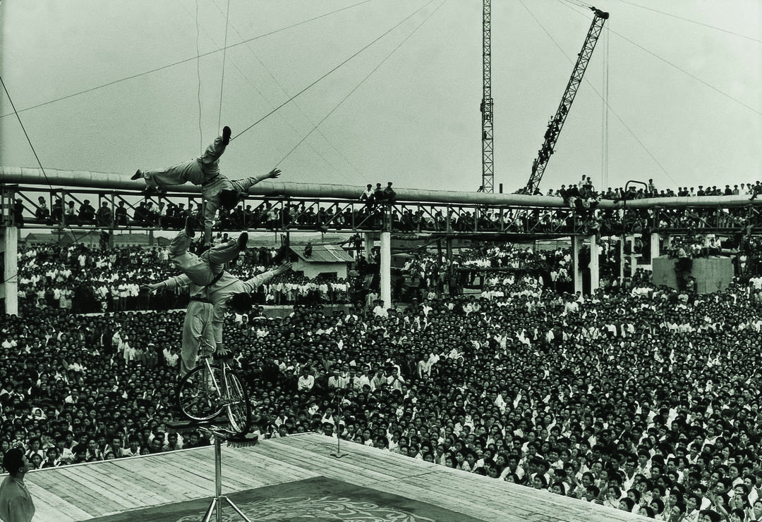 20世纪70年代,沈阳杂技团表演的《高台定车》